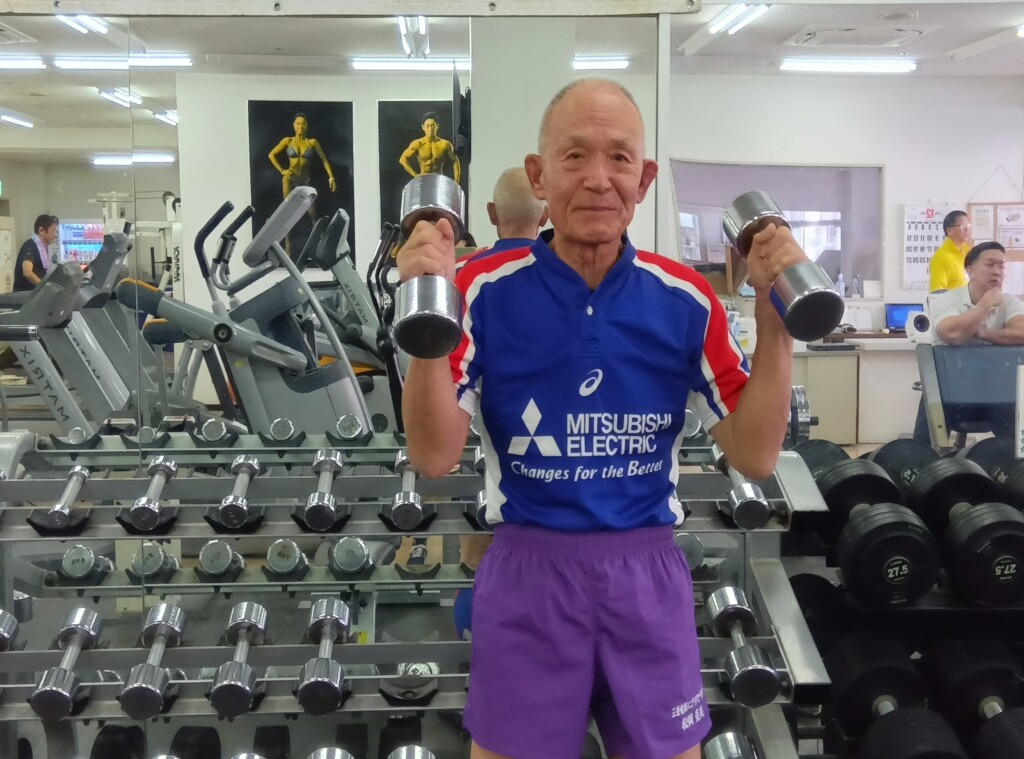 写真は、紫パンツを着用してトレーニングジムの写真です。笑って下さい。